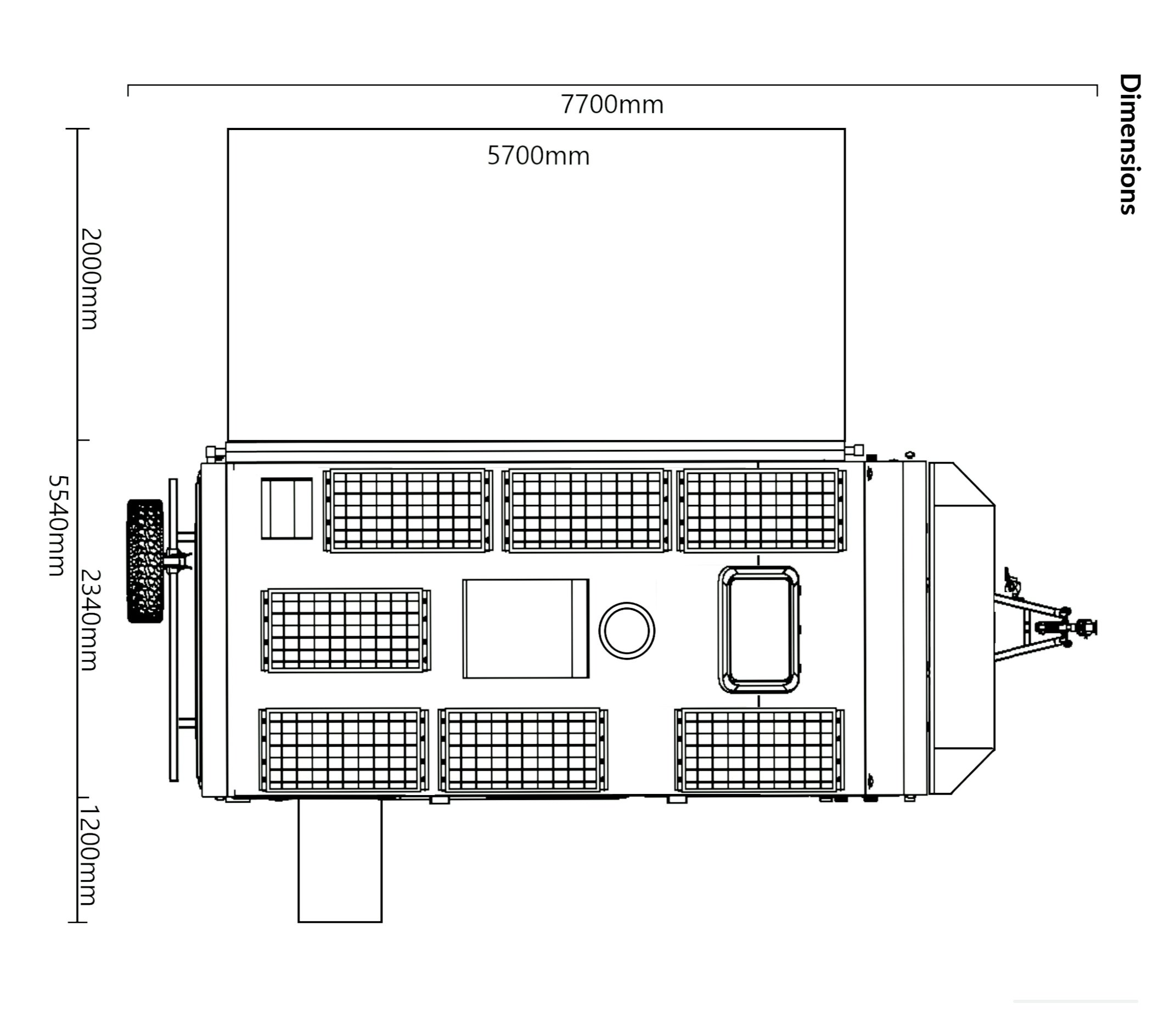 ♦ Closed (Travel Size) – 7700mm L x 2340mm W x 3140mm H